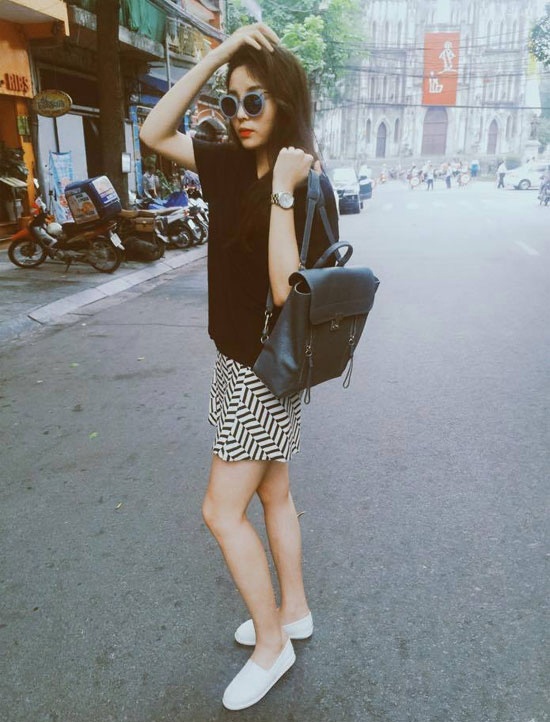 | Thùy Dung là một trong những hoa hậu có gu thời trang đời thường khá cá tính và sành điệu. |