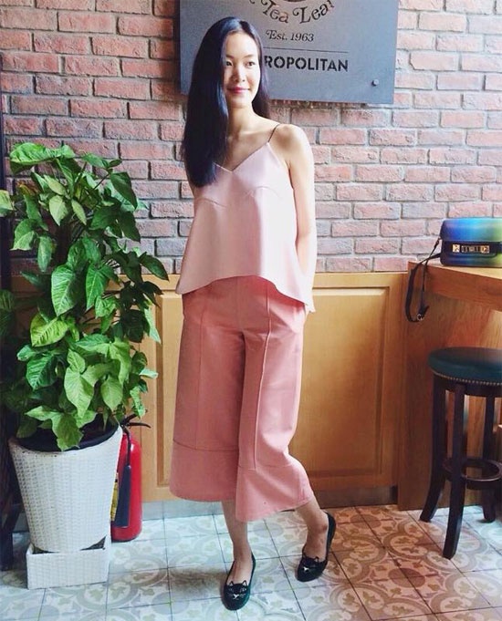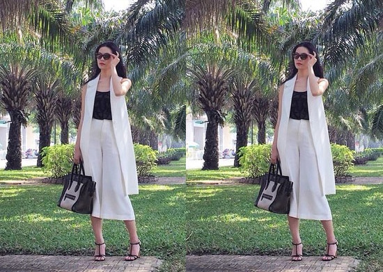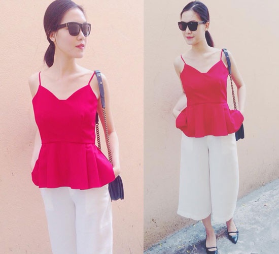 | Áo hai dây, quần ống rộng là item sành điệu, hiện đại được Thùy Dung "lăng xê". |