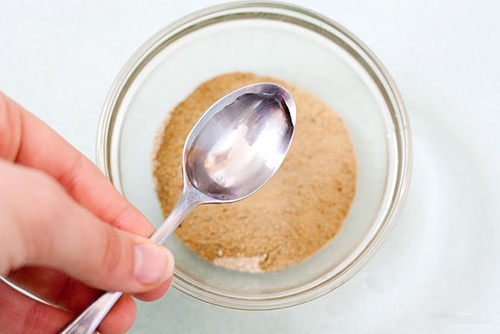 Cách làm mặt nạ đất sét: Bước 1: Đổ khoảng 2-3 thìa đất sét bột vào bát thủy tinh. |