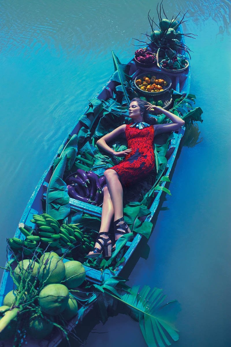 | Cách đây không lâu, siêu mẫu Eniko Mihalik vừa tới Việt Nam để thực hiện bộ ảnh mới quảng bá cho nhãn hiệu thời trang Anthropologie. Mới đây, bộ ảnh vừa được ra mắt, trong hình, chân dài người Hungary tạo dáng trên một con thuyền chở đầy trái cây. |