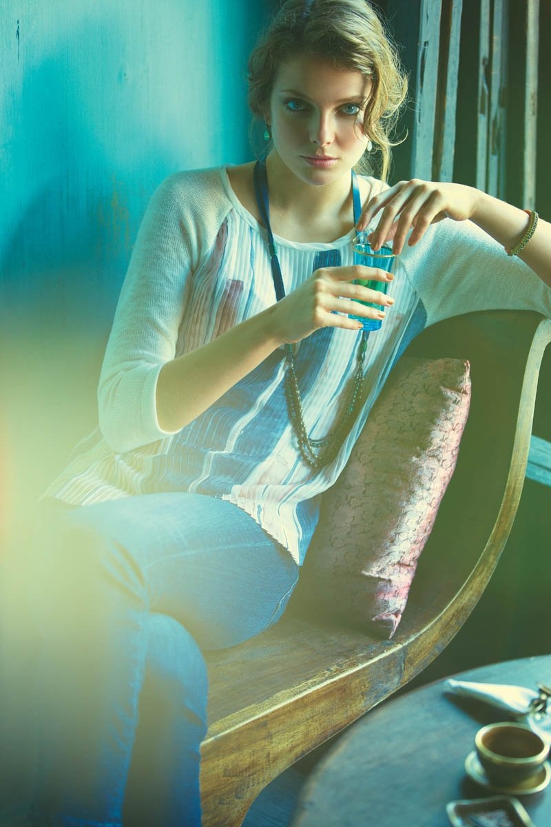 | Eniko Mihalik diện trang phục được kết hợp với trang sức và giày dép do stylist Akari Endo chỉ đạo, cô làm mẫu dưới ống kinh của nhiếp ảnh gia nổi tiếng Diego Uchitel. |