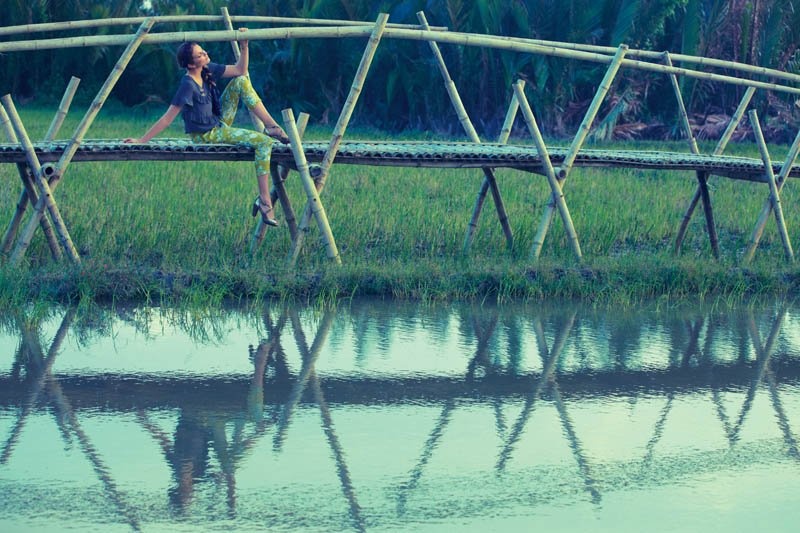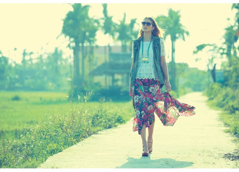 | Siêu mẫu thả dáng trên con đường làng quê Việt. |