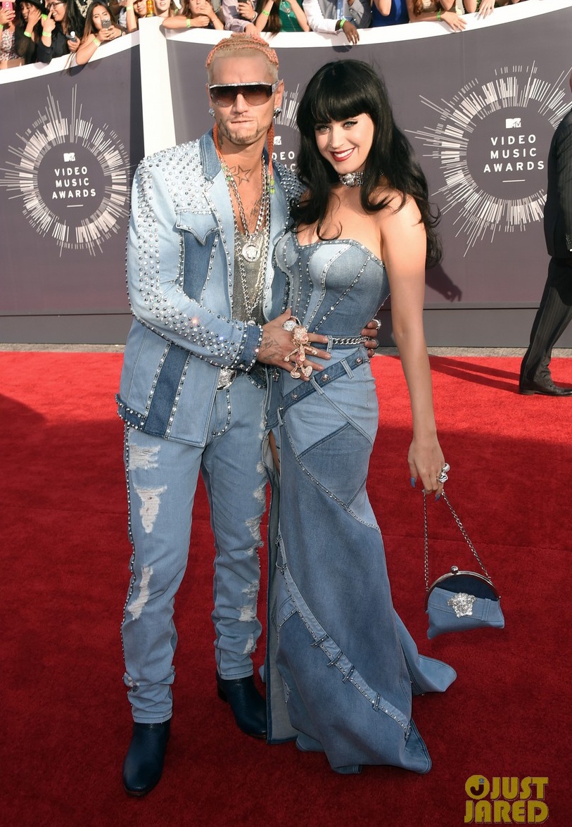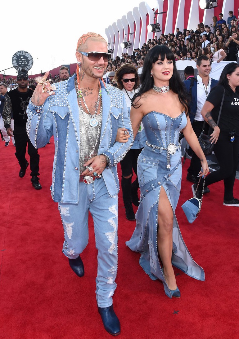 | Trong khi đó, Katy Perry gây chú ý khi khoác tay Riff Raff trên thảm đỏ. Cả hai diện nguyên một "cây bò" bắt mắt. |