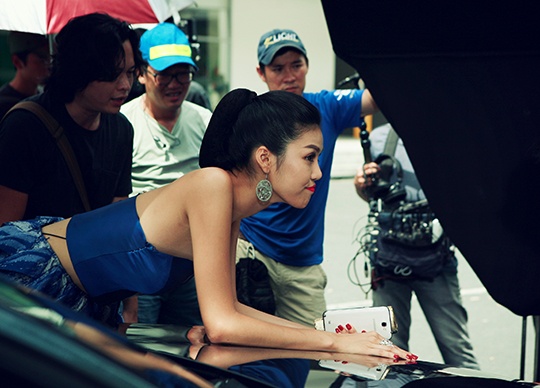 Chân dài Lan Khuê dìm hàng Bằng Kiều trên phim trường
