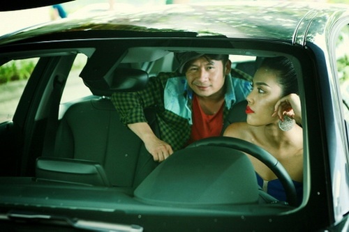Chiều cao 1m76 của giải vàng Siêu mẫu khiến anh Bầu có phần bị lép vế khi đảm nhận vai người yêu của cô trong phim điện ảnh đầu tay "Sơn đẹp trai".
