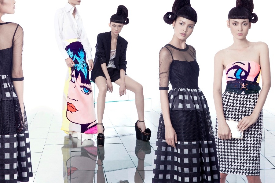 | Nhà thiết kế Nguyễn Công Trí vừa giới thiệu bộ sưu tập theo phong cách pop art. Ba thế hế trưởng thành từ chương trình Vietnam’s Next Top Model là người mẫu Kha Mỹ Vân, Thùy Trang và Chà Mi cùng kết hợp thể hiện bộ sưu tập này. |