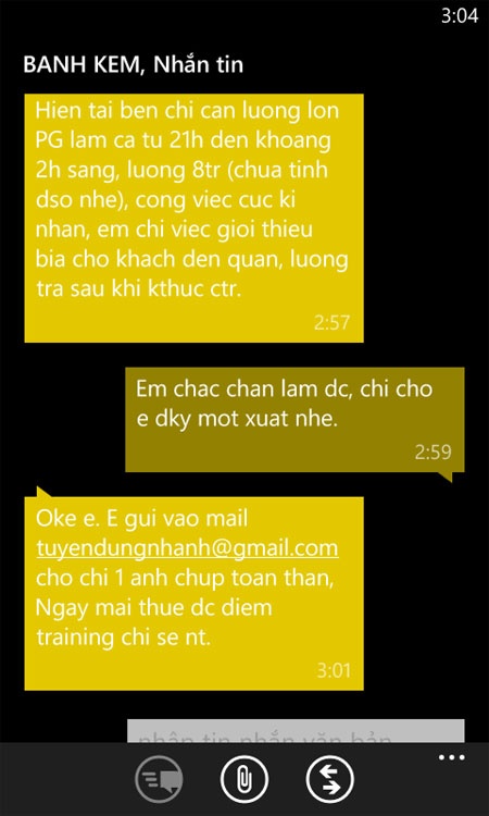 | Tin nhắn xin làm PG. |