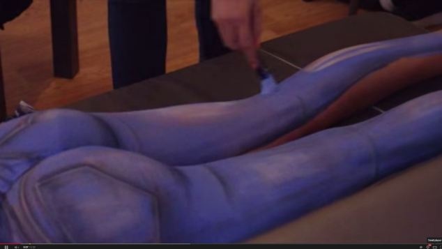 | Cận cảnh chiếc quần jeans "ảo" được tạo từ nghệ thuật body-painting. |