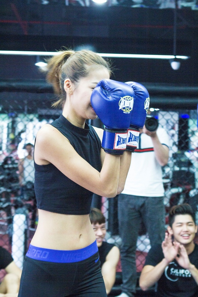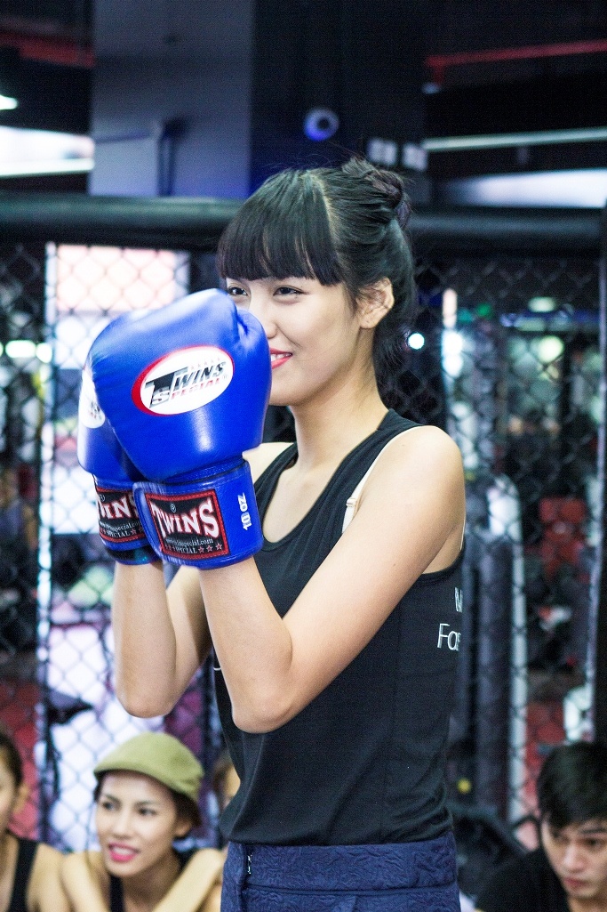 | Các thí sinh nữ cũng rất hào hứng trổ tài đấu võ. |
