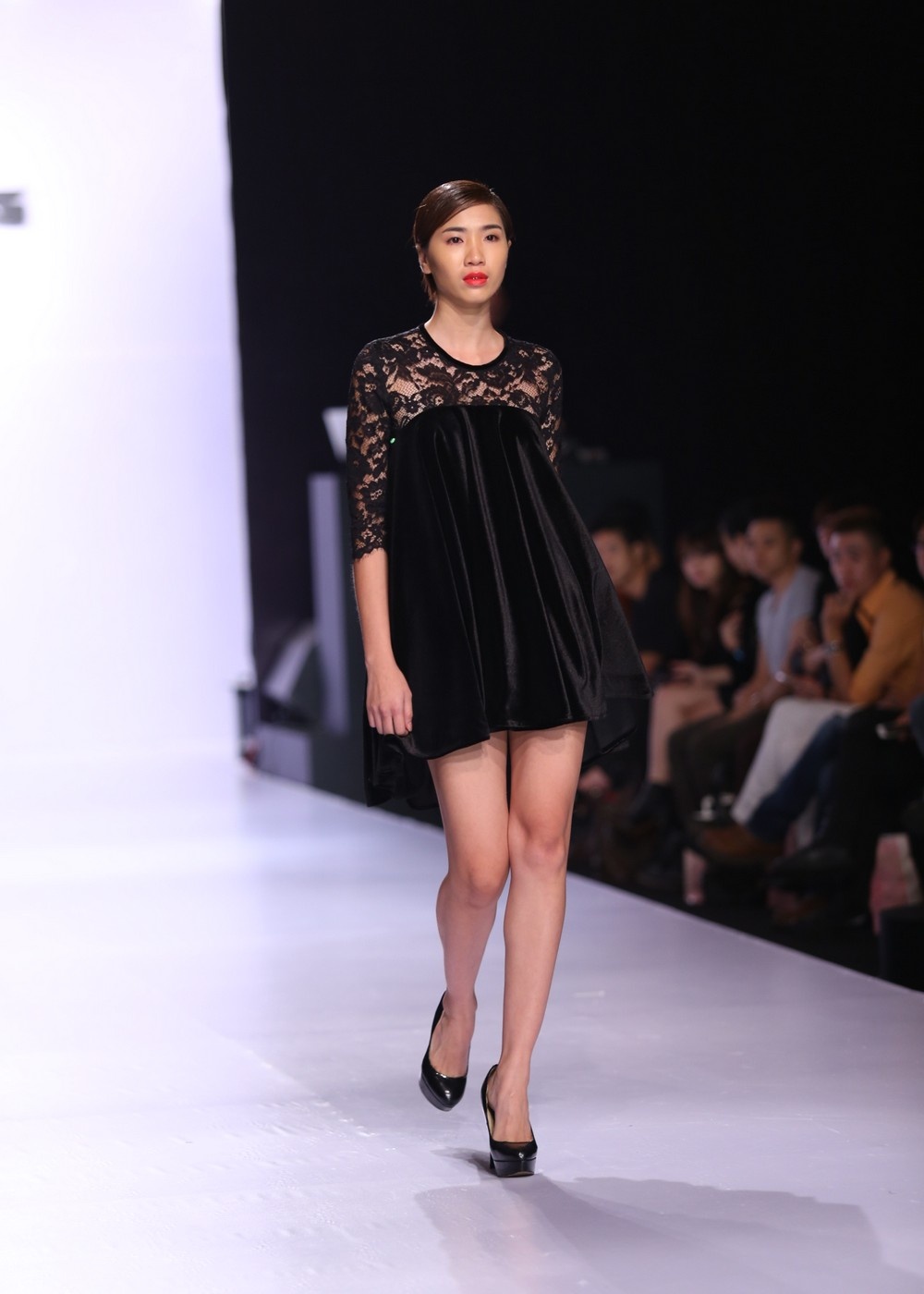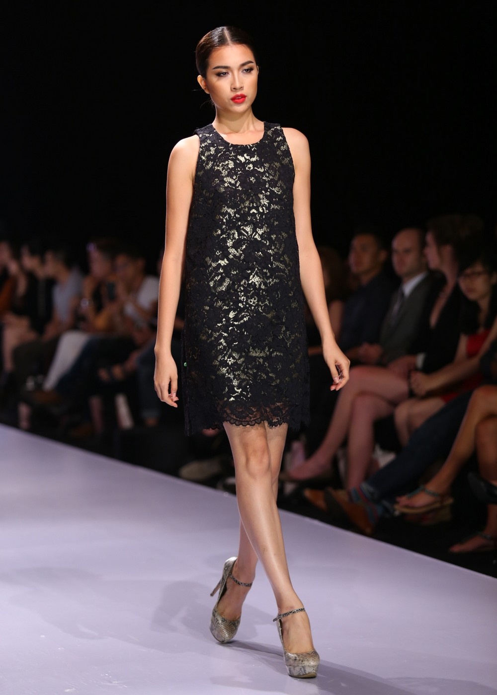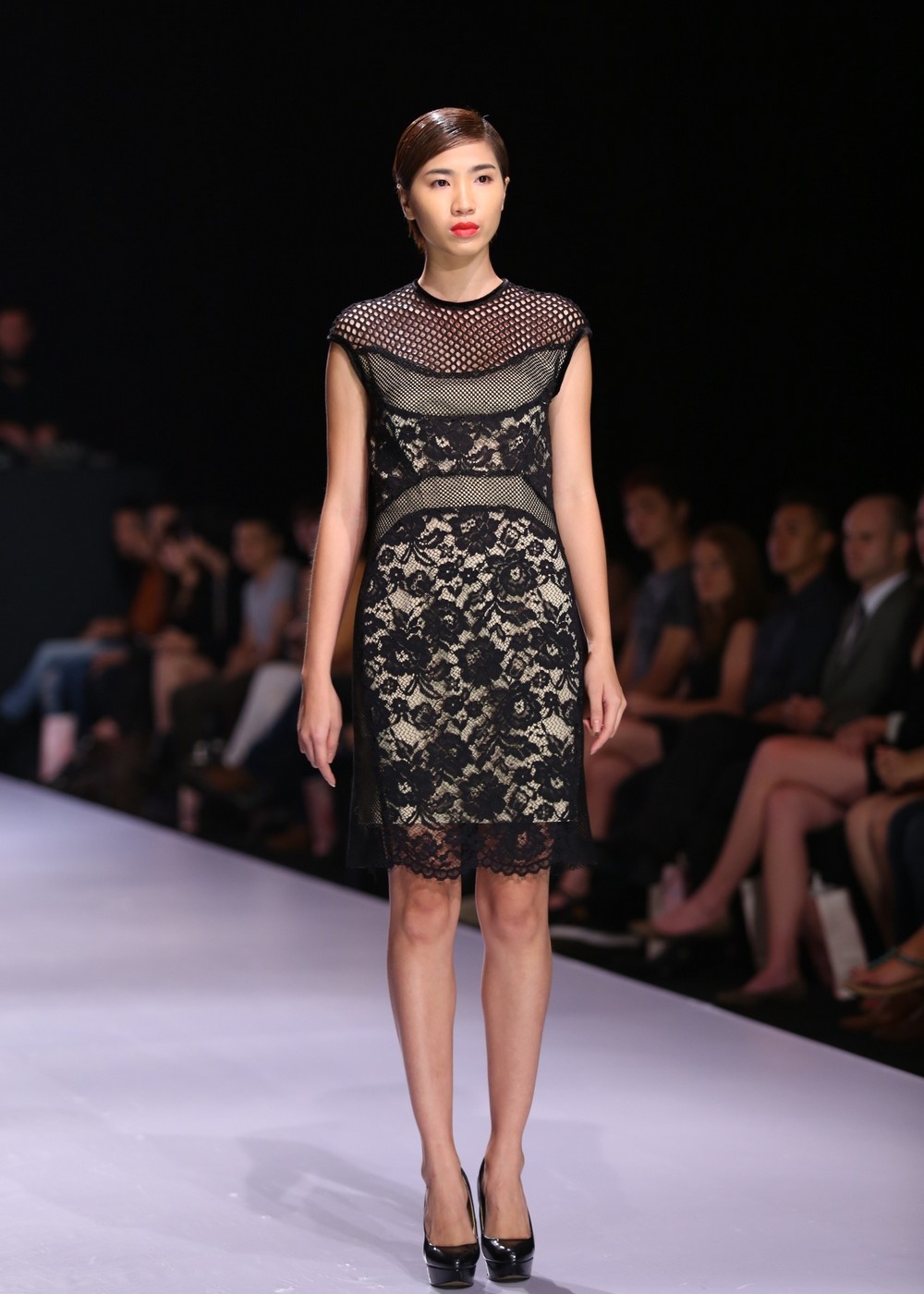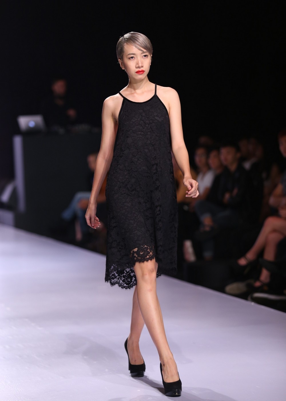 | Kiểu dáng váy ngủ ren được nhà thiết kế giới thiệu trên sàn diễn. Thiết kế hợp xu hướng và không kém phần nữ tính, quyến rũ. Người mẫu Phan Linh trình diễn mẫu váy này. |