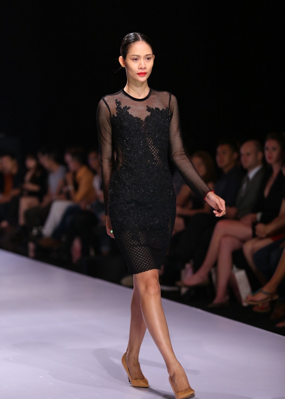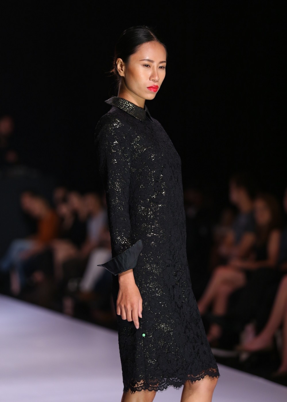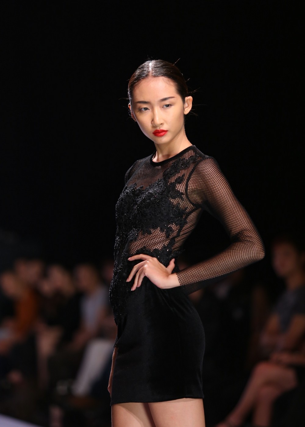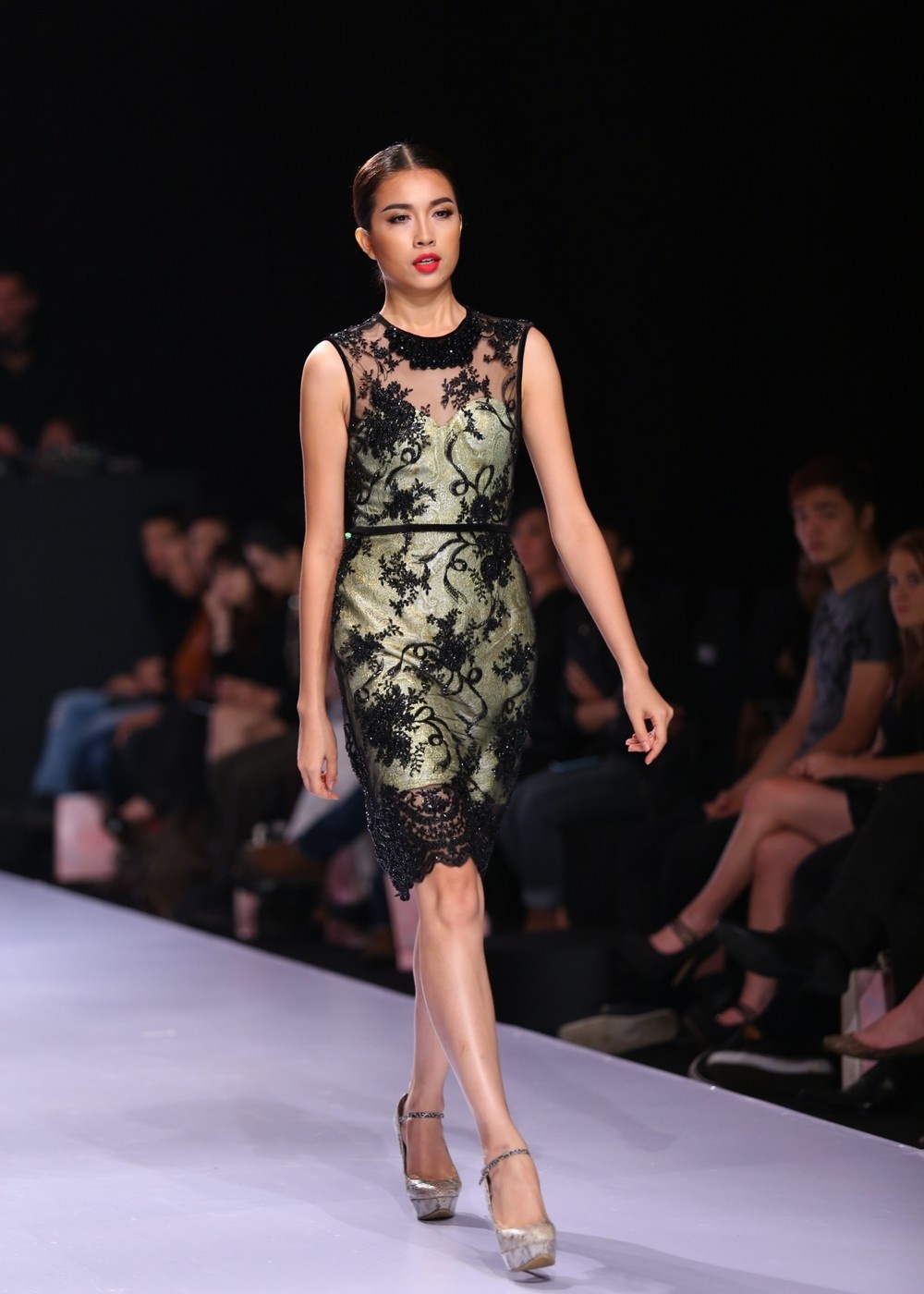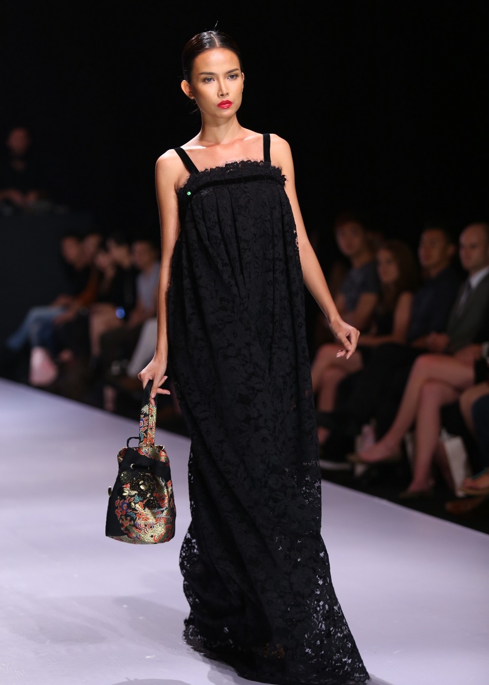| Kiểu dáng váy ngủ ren được nhà thiết kế giới thiệu trên sàn diễn. Thiết kế hợp xu hướng và không kém phần nữ tính, quyến rũ. Người mẫu Phan Linh trình diễn mẫu váy này. |
