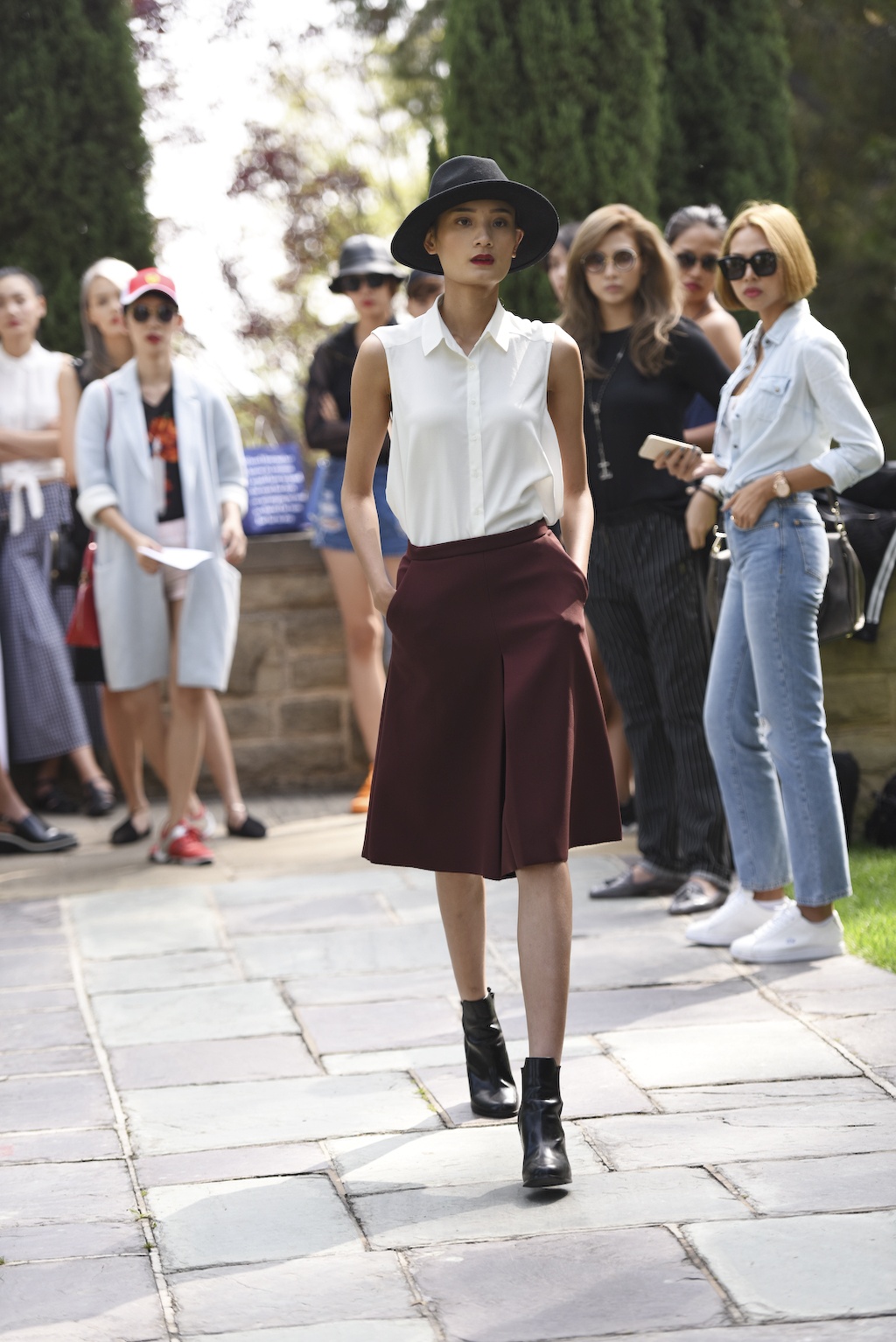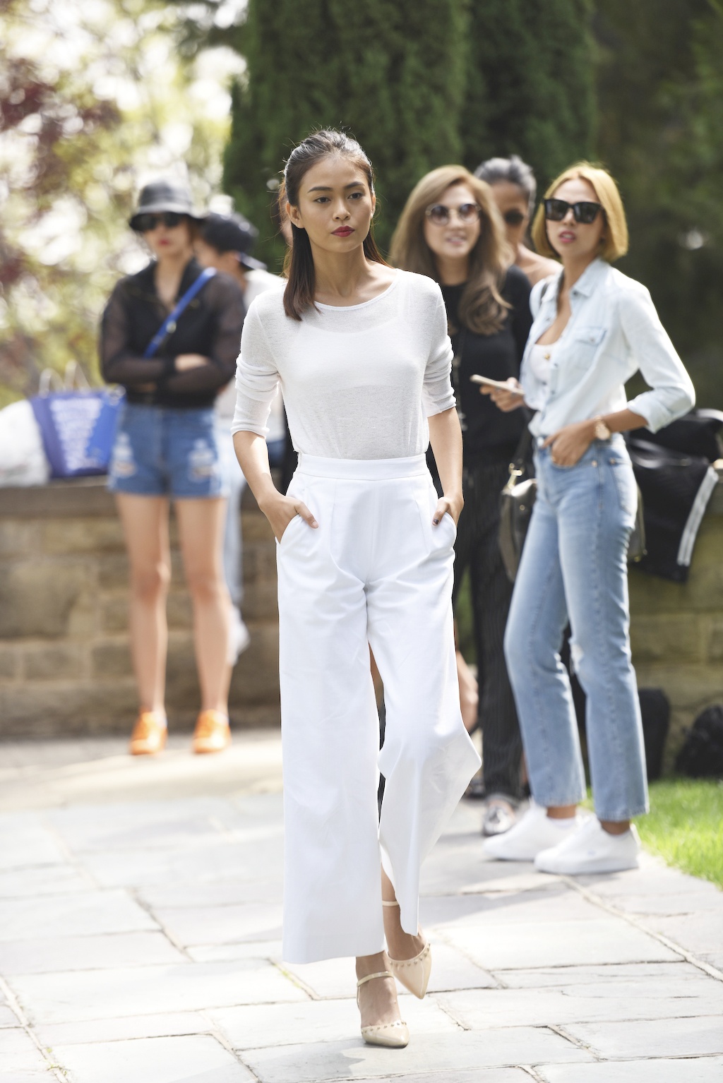 Mâu Thanh Thủy tự tin sải bước trước sự chứng kiến của đồng nghiệp. Cô được khen ngợi là tiến bộ hơn hẳn sau chuyến sang quốc đảo sư tử biển, tham gia casting Tuần lễ thời trang Singapore. Quán quân Vietnam's Next Top Model 2013 diện "cây trắng" thanh lịch.
