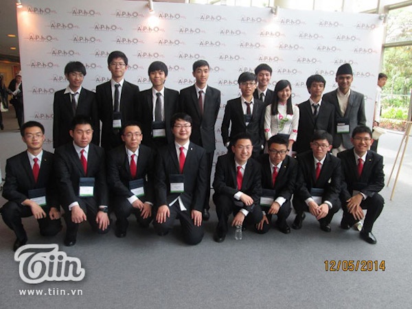 | Huệ và một bạn trong đoàn thi Olympic Vật lý quốc tế 2014. |