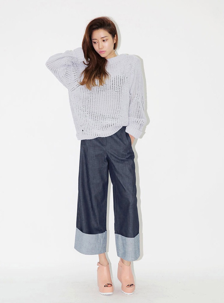 | Một cách kết hợp quần ống rộng với áo lưới cho tiết trời giao mùa được ưa thích. |