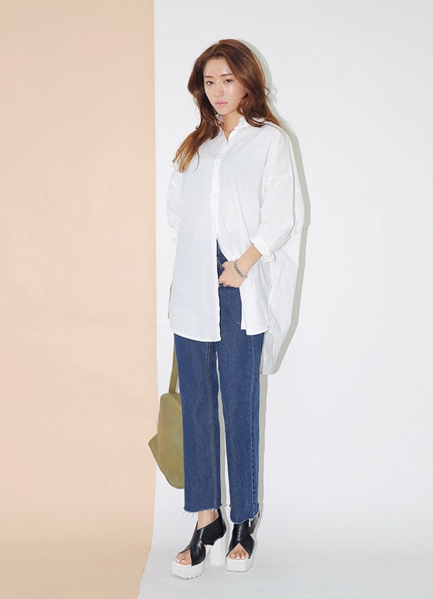 | Sơ mi và quần jeans rộng khỏe khoắn cho thời trang xuống phố. |