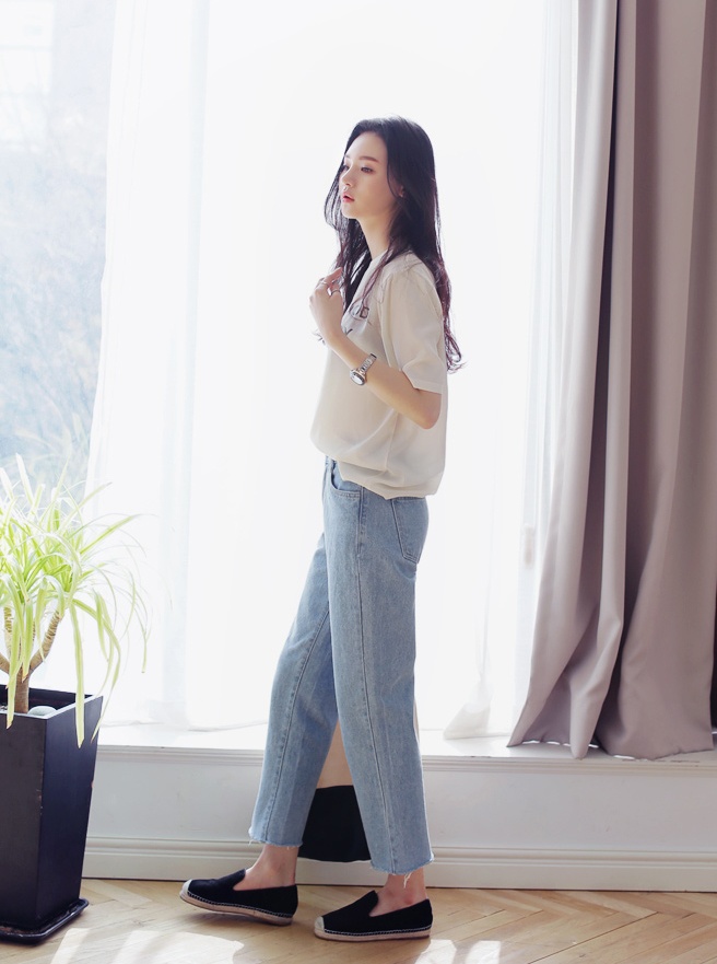 | Thời trang ngày hè thoải mái với cách kết hợp mốt quần jeans này với giày slippers. |