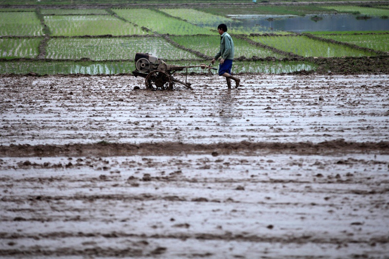 | Những người nông dân ở thung lũng Hòa Bình (TP.Hòa Bình) cũng đang cày ải cho vụ đông xuân. Dù trời rét, nhiều người vẫn có thói quen đi chân đất lội ruộng. |