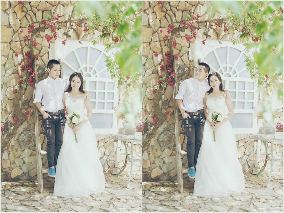 | Thắng chia sẻ: “Đây không phải ảnh cưới, bọn mình cũng chỉ là bạn bè. Thấy thích và hứng lên nên đi chụp thôi”. Với mục đích chụp cho vui nên bộ ảnh có những biểu cảm rất hài hước, đáng yêu của cô dâu và chú rể, mang lại sự thích thú và thú vị cho người xem. |