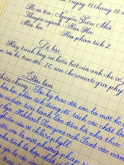 Ngoài những thành tích học tập tốt, tích cực tham gia các hoạt động xã hội của một sinh viên khoa Hóa học (Đại học Vinh) thì Nguyễn Tiến Nhã (SN 1993, quê huyện Thanh Chương, Nghệ An) còn được nhiều thầy cô, bạn bè biết đến với khả năng viết chữ đẹp như in của mình.