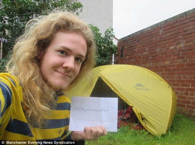 Theo trang DailyMail, Evan Eames, chàng sinh viên đến từ Montreal (Canada) đã quyết định cắm trại trong sân vườn của một người lạ ở Anh khi anh không có đủ tiền thuê phòng trọ.