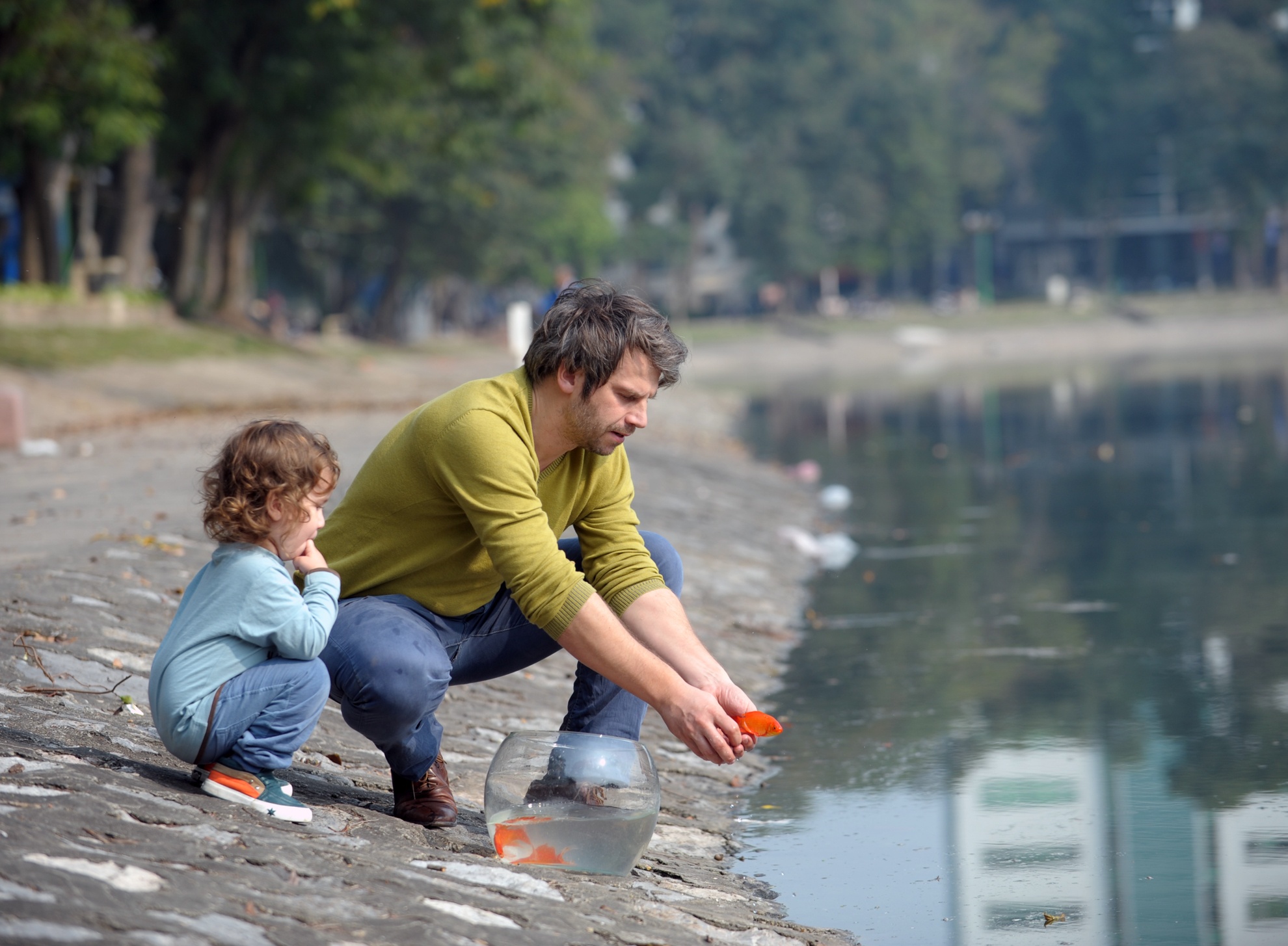 Chàng Tây thả cá chép tiễn Táo quân chầu trời sớm