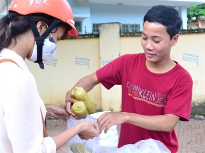 | Thủ khoa Nguyễn Cường Quốc bán ngô luộc trước cổng bệnh viện. |