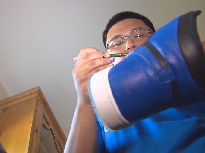 Jose Armando Bustamante là sinh viên Cao đẳng Cộng đồng Houston. 2 năm trước, vì không có 200 USD mua đồ mới, Jose đã nảy ra ý tưởng phục chế giày thể thao cũ.