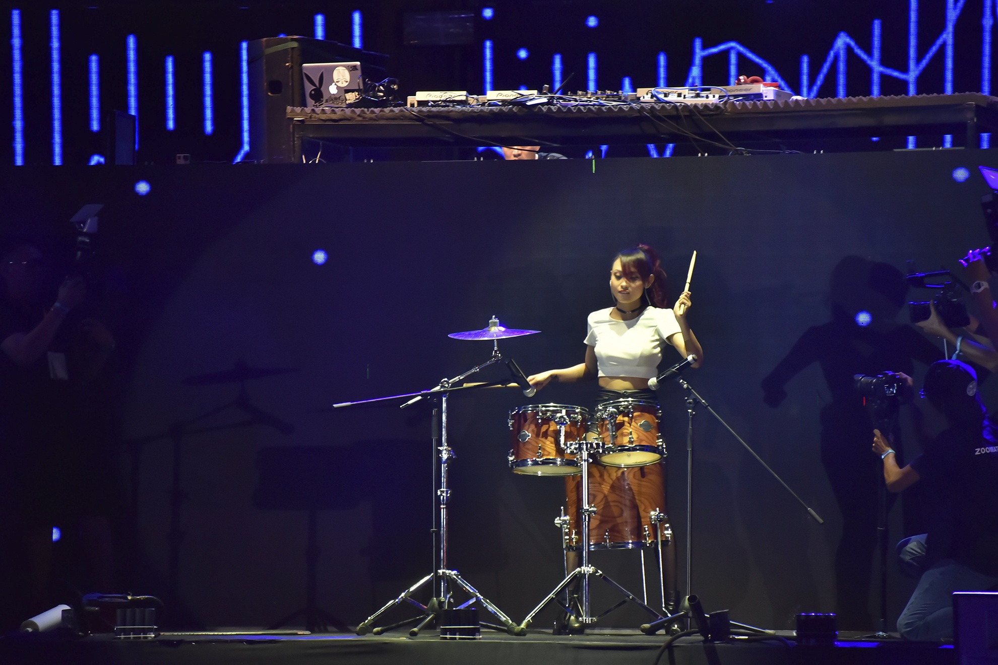 | DJ Ty Ty có màn trình diễn gây dấu ấn khi kết hợp nhạc điện tử và chơi trống. Lâm Nguyễn. |