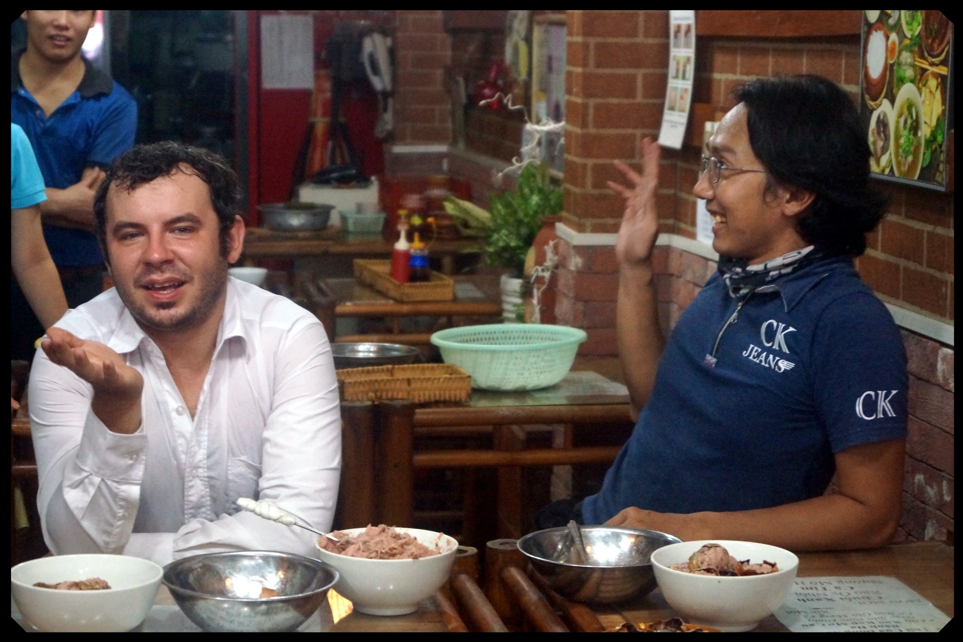 | Adi: “Mây ơi, Mây có điện thoại kìa. Chắc sếp gọi đó”. Mây: “Sếp gọi cũng mặc, nghe điện thoại rồi tui thua cuộc, mất bữa ăn sáng thì sao”. |