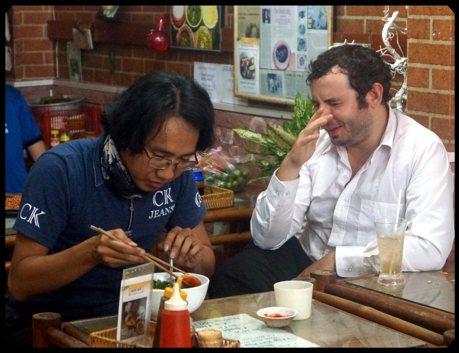 Cà pháo là một món ăn dân dã của người Việt. Ăn thì rất ngon nhưng khi làm nếu không cẩn thận sẽ gây thương tích. Hai chàng đã trải qua cảm giác này vào hôm nay khi mỗi người phải gọt một rổ cà pháo.