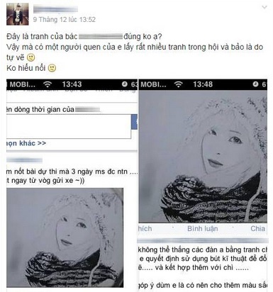 | Những dòng chia sẻ của B.M.T trên trang cá nhân, khiến mọi người đều nghĩ là tranh do anh vẽ. Ảnh T.L đăng tải. |