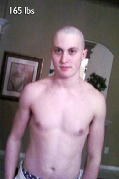 | Cody Hendrix béo, nhợt nhạt trong quá trình hóa trị vì căn bệnh ung thư tinh hoàn. |
