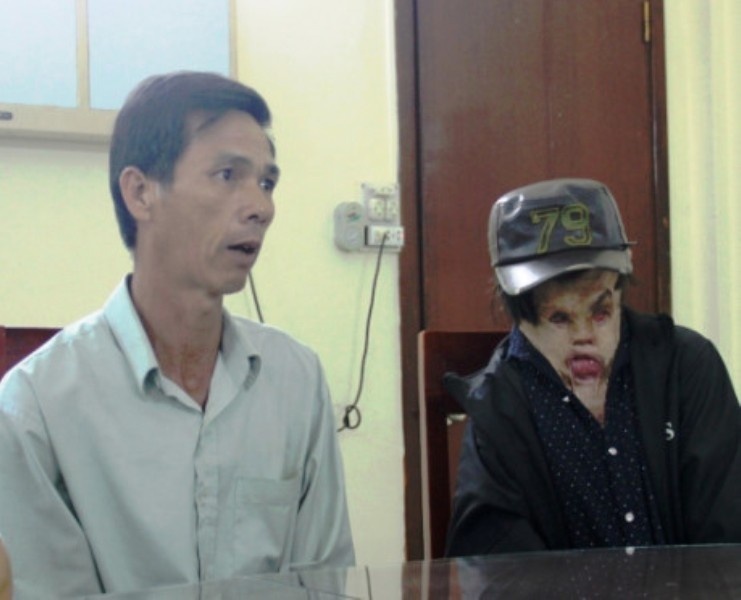 Hải bị dị dạng khuôn mặt khi 1 tuổi do không may bị ngã vào nồi cháo đang sôi, gây bỏng nặng vùng mặt. Gia đình đã đưa đi chữa trị nhiều nơi với hy vọng tái tạo lại khuôn mặt cho em.