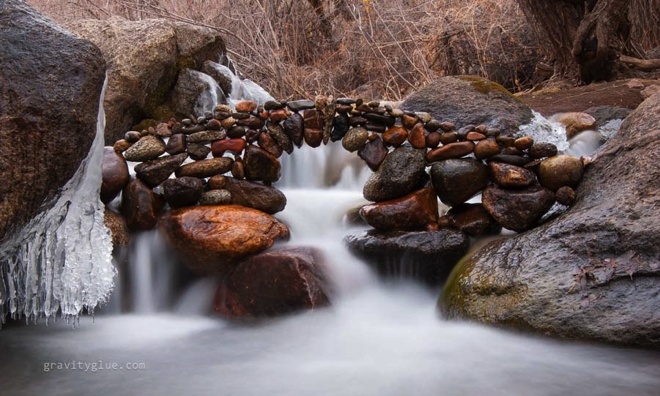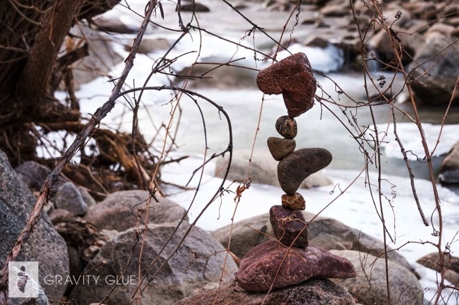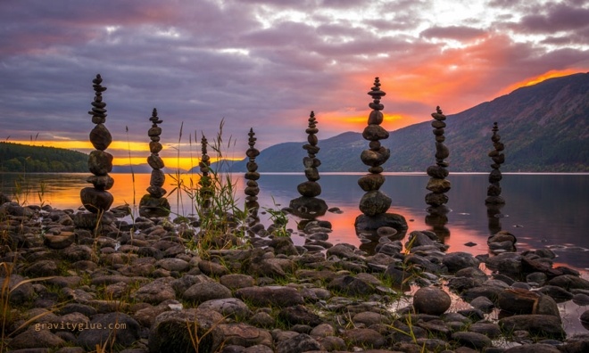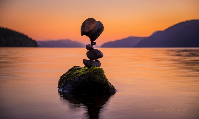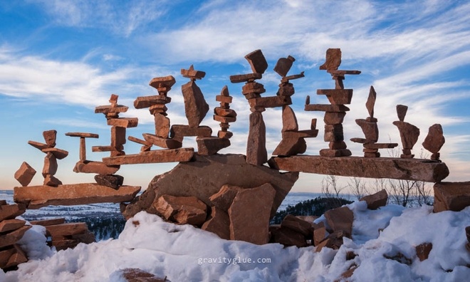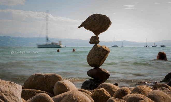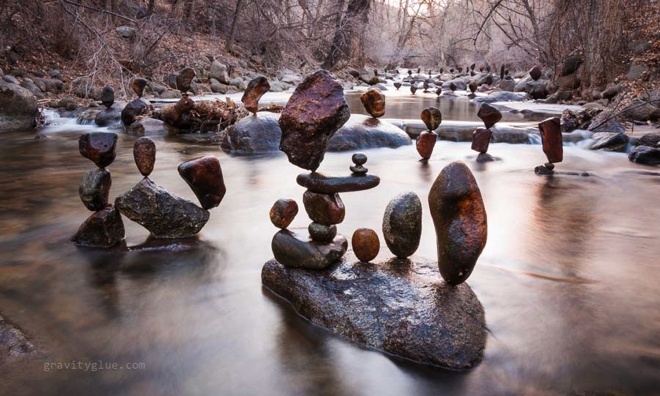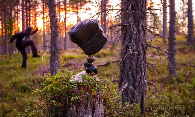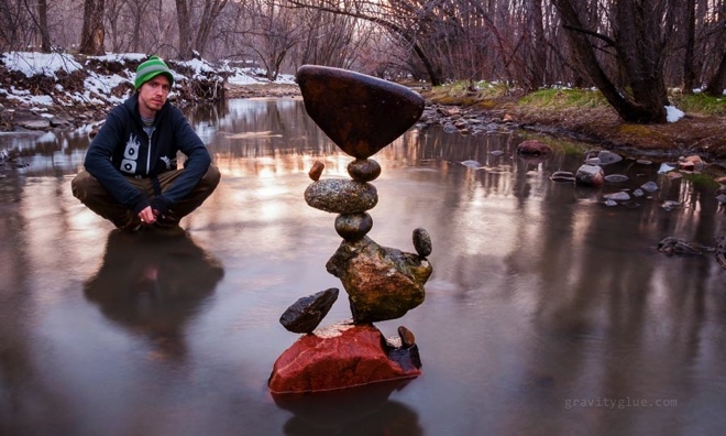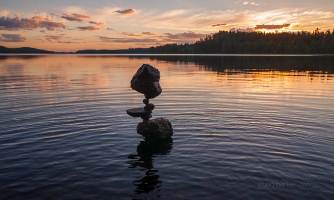 | Thay vào đó, anh chỉ đơn thuần sử dụng nguyên lý lực hấp dẫn của Trái đất để tạo ra sự cân bằng giữa các hòn đá. |