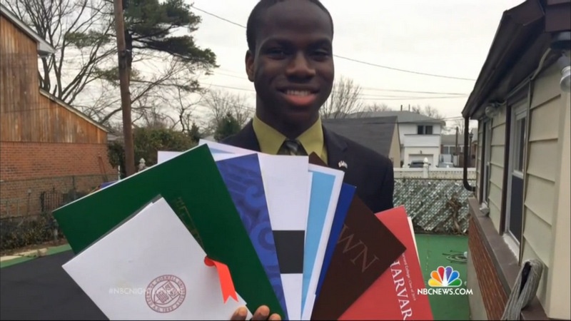 Mở những bức thư hồi đáp từ các trường đại học, Harold Ekeh vô cùng ngạc nhiên khi tất cả đều đồng ý nhận cậu. Trong đó, có 8 trường Ivy League là Đại học Yale, Harvard, Dartmouth, Cornwell, Brown, Penn, Columbia và Princeton. Ảnh: NBC. |