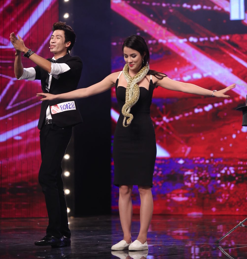 | Đem cả trăn lên sân khấu với một tiết mục ảo thuật công phu nhưng Cao Hoài Thương chỉ nhận được 2 sự đồng ý của giám khảo Bằng Kiều và Trấn Thành. Dẫu vậy, anh vẫn là một trong những người được giám khảo đặt lên bàn cân để chọn cho vòng thi bán kết tiếp theo. |