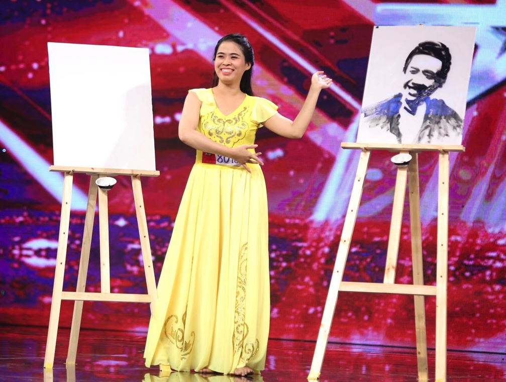 Có một phần thi vừa múa vừa vẽ cùng những đường nét khá khó hiểu, Lâm Thị Hoàng Chinh (28 tuổi) khiến khán giả phải tò mò.