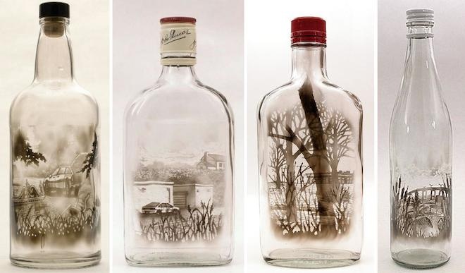 Mặc dù rất khó để thực hiện song Jim Dingilian vẫn biết cách khiến nhiều người bất ngờ với các tác phẩm vẽ thiên nhiên đẹp mắt bên trong chai rượu của mình.