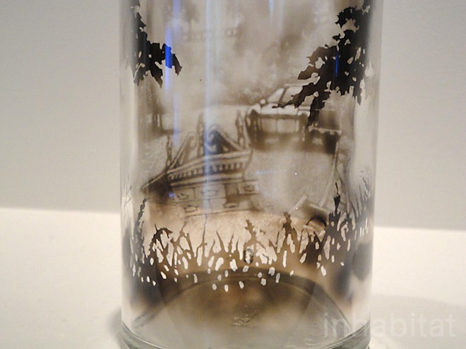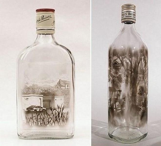 | Chi tiết một tác phẩm bên trong chai rượu đẹp mắt của Jim. |