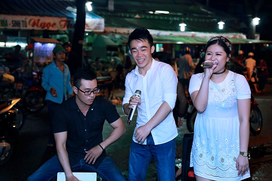 Hạnh Nguyên lần đầu thử nghề hát rong nên rất hào hứng. Trước đó, cô từng bị tai nạn phải phẫu thuật quai hàm nhưng vẫn giữ lửa với đam mê ca hát. "Với nghệ sĩ, tôi nghĩ ở đâu cũng là sân khấu, tôi hát lề đường nhưng cũng có rất nhiều khán giả yêu mến giọng hát tôi. Đi hát thế này là cách tôi tập luyện cho vòng tứ kết", Lê Cường chia sẻ. |