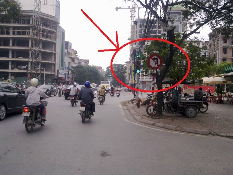 | Biển báo cấm rẽ trái - nơi nam thanh niên đứng cầm biển. Trang Otofun cũng đăng tải một số bức ảnh về biển báo tại khu vực này. |