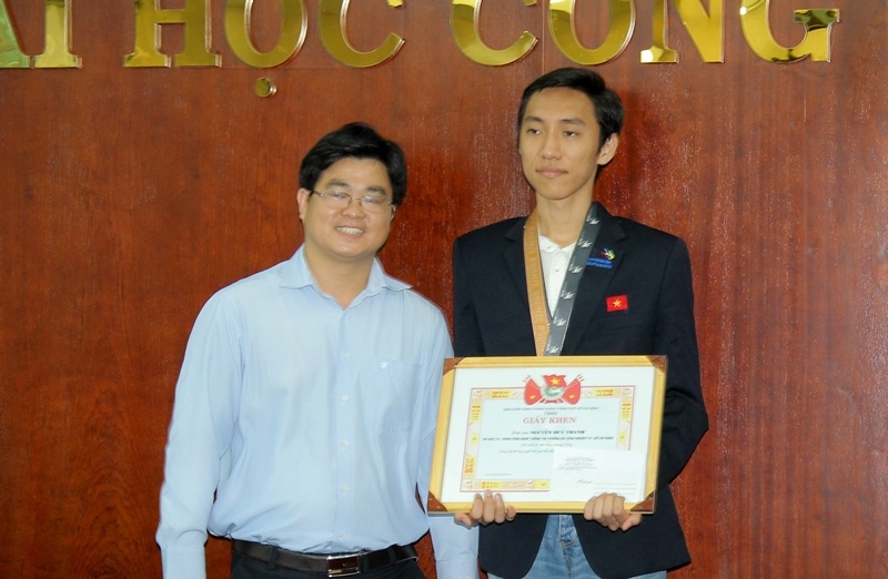 | Duy Thanh nhận được sự động viên khích lệ lớn của ĐH Công nghiệp TP HCM, nơi em đang theo học. |