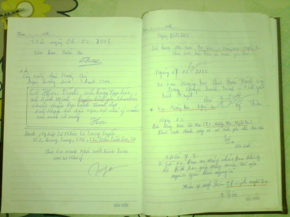 | Cuốn sổ ghi lời chúc của những người Thăng gặp trên đường. |