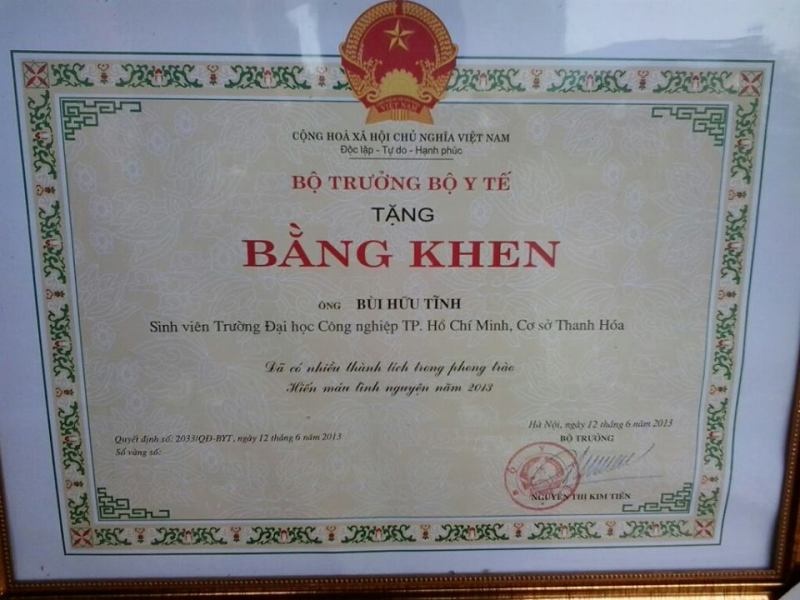 | Tĩnh đã được Bộ trưởng Y tế tặng bằng khen. |