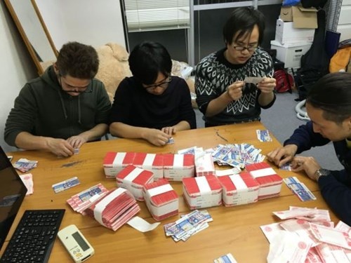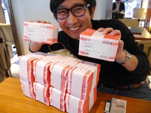 Không thể một mình cào hết 5.000 tấm vé số, Yoshio đã huy động một nhóm bạn cào cùng mình. Kết quả, anh chàng này chỉ trúng số tiền khoảng 378.000 yen và bị lỗ hơn 600.000 yen so với số tiền đầu tư ban đầu. |
