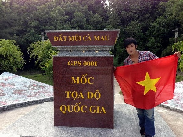 | Kiyotaka Yamaoka chụp tại cột mốc ở Đất mũi Cà Mau. |