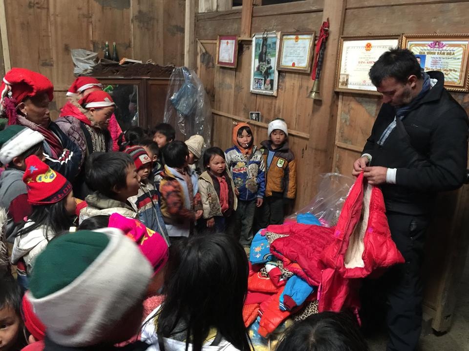 Khi lên đến nơi, chứng kiến cảnh người dân và trẻ em nơi đây chống chọi với cái lạnh -2 độ C bằng đôi chân trần và tấm áo mỏng, anh đã quyết định kêu gọi bạn bè quyên tiền mua áo ấm cho các em.