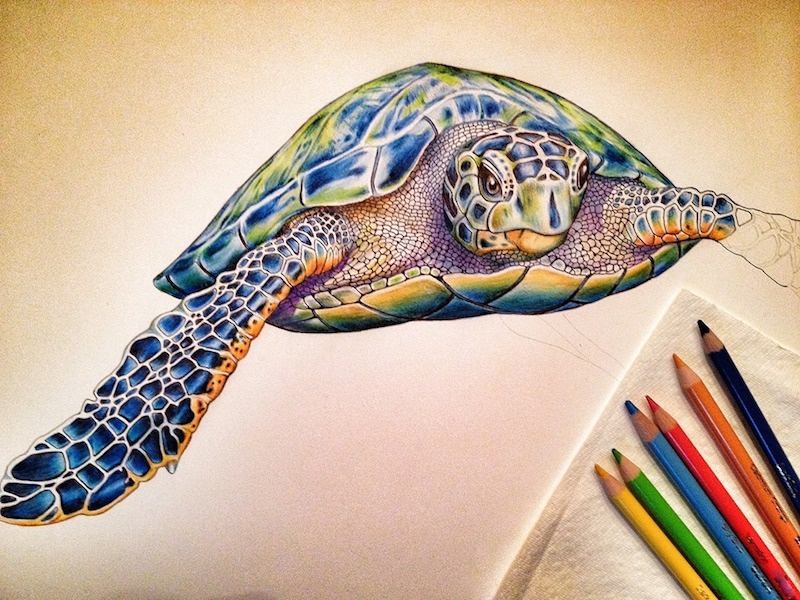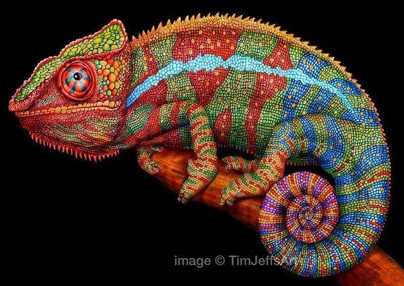 | Bản vẽ của Tim cụ thể đến tận cấu trúc da loài vật, vảy trên thân... |
