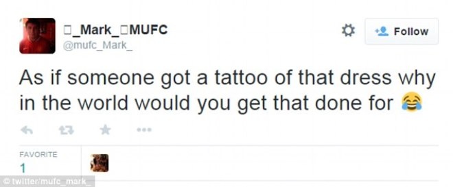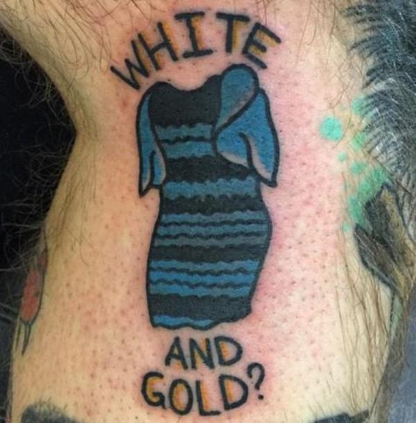 Theo Buzzfeed, câu chuyện về màu sắc của chiếc váy vàng trắng hay xanh đen vẫn chưa kết thúc. Chàng trai Daniel Howland, (Texas, Mỹ) vừa tiếp tục gây chú ý khi xăm hình bộ váy này lên chân.
