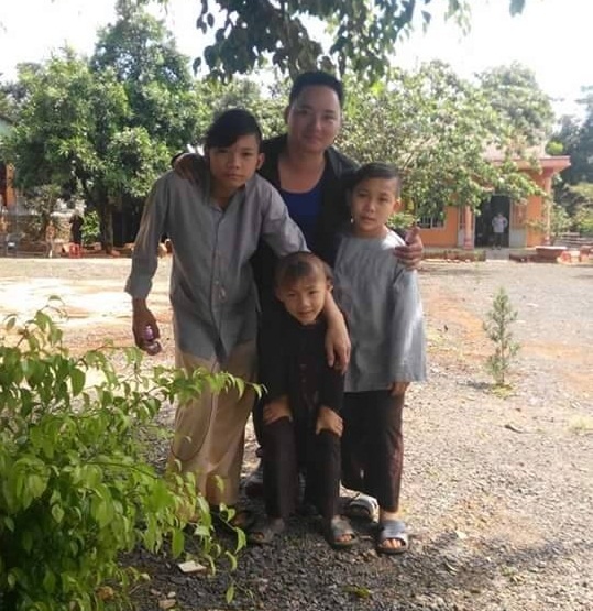 | Trung và các chú tiểu mồ côi tại một ngôi chùa nghèo. Ảnh: NVCC. |